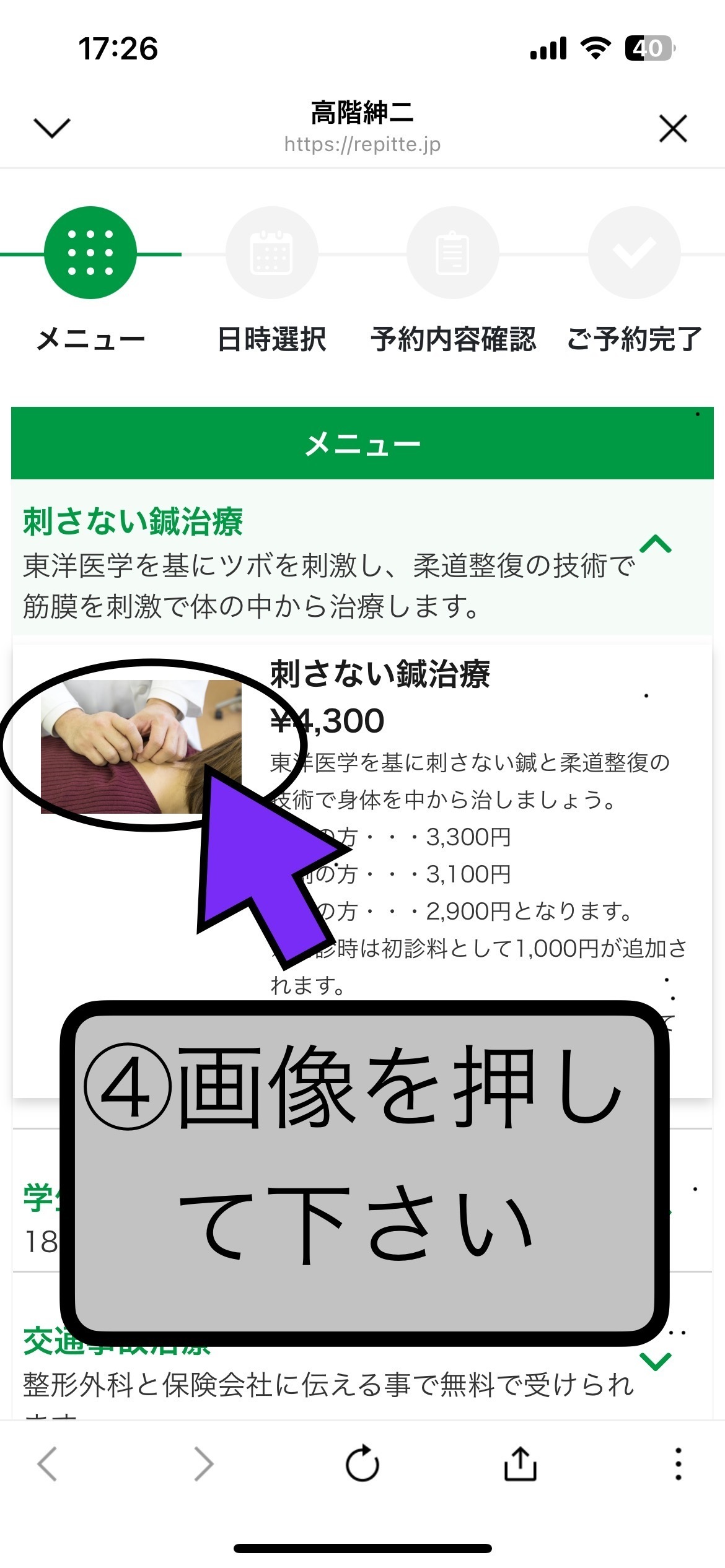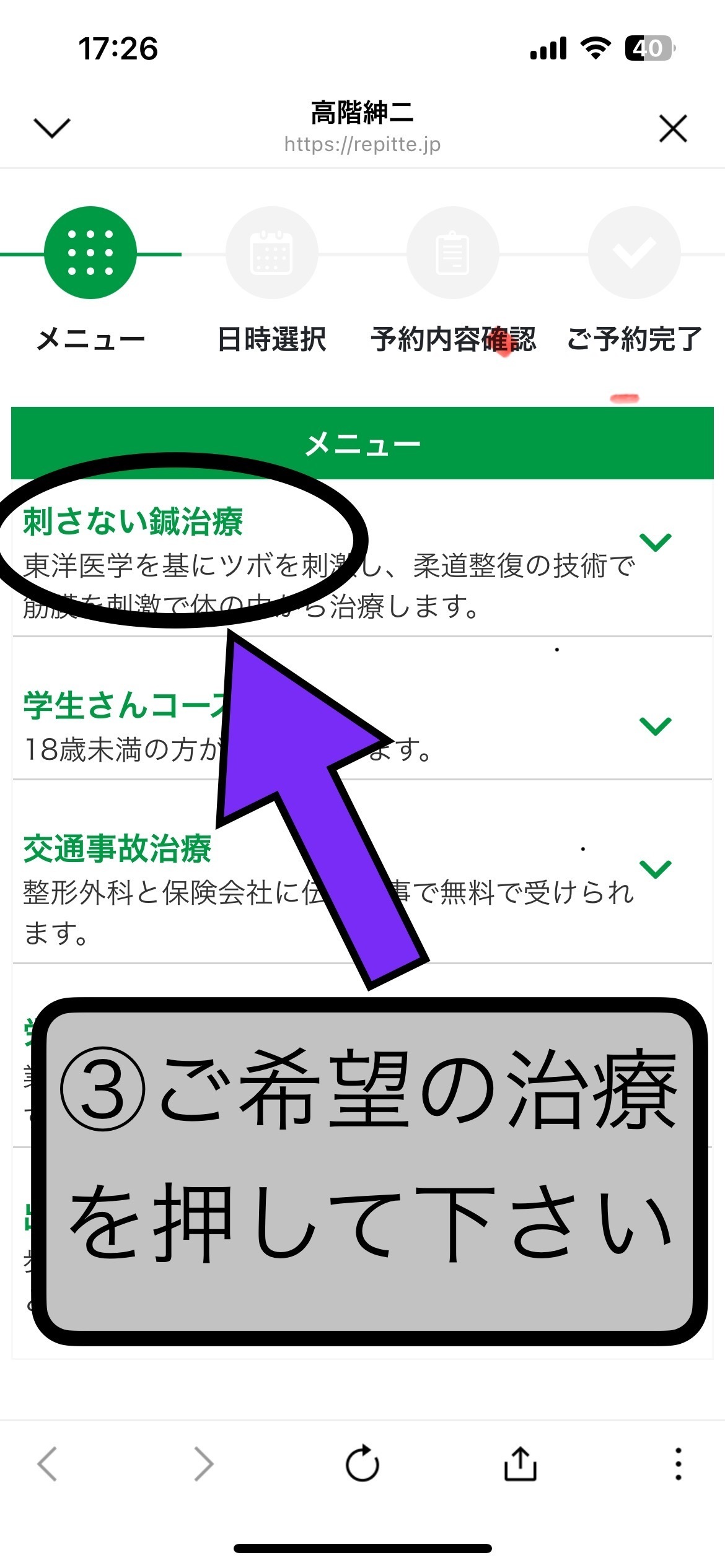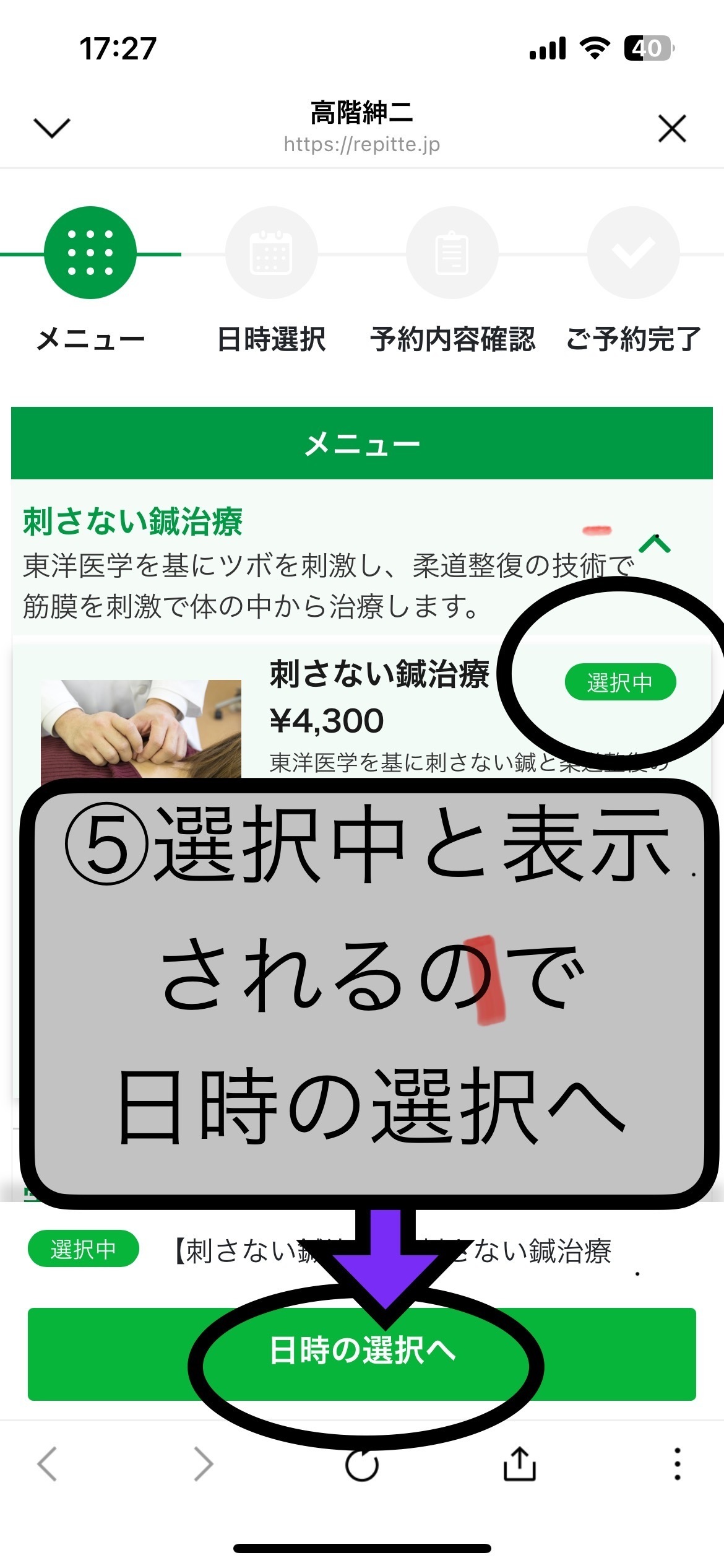 ➁『メニュー選択』が表示されますので、そこを押して下さい。